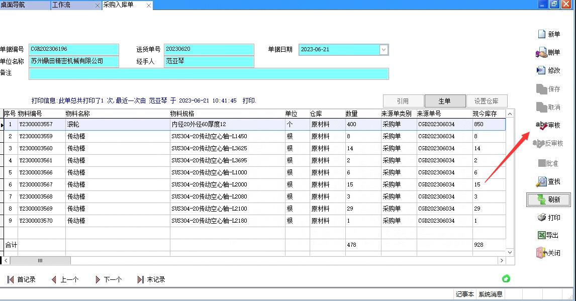 出入库批量审核可以一次性对多个出库单、入库单进行审核、批准或反审核、反批准操作