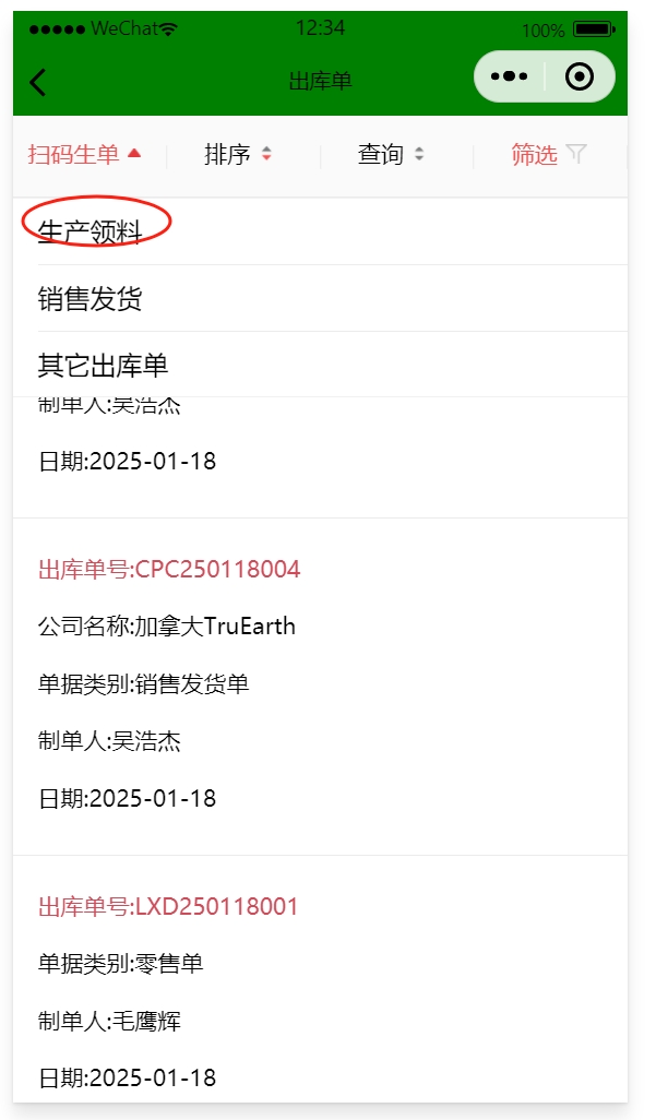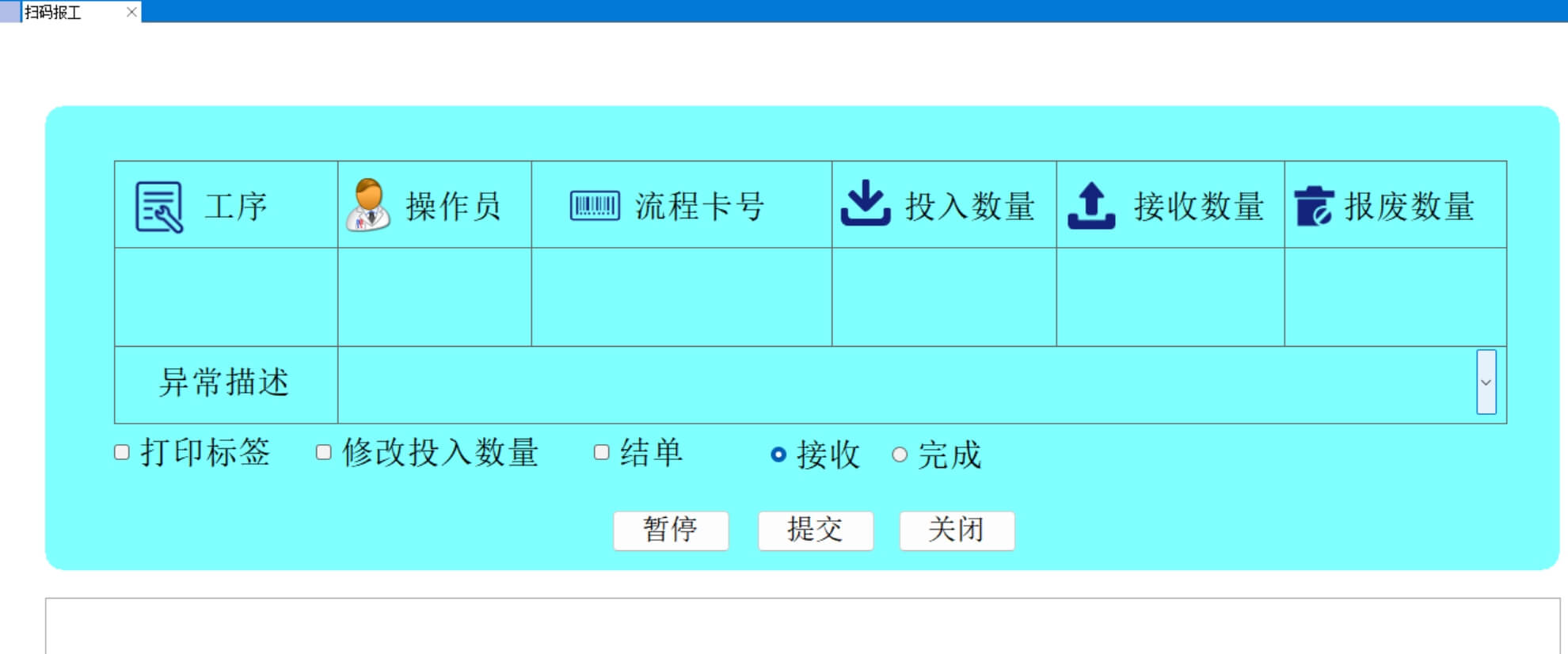 5、生产工序管理,包括扫码报工、工序进度查看、打印标签