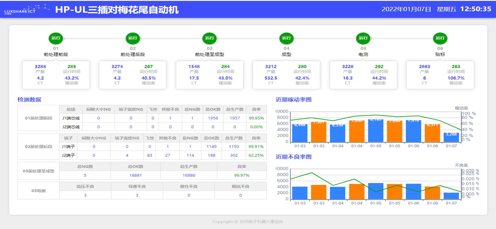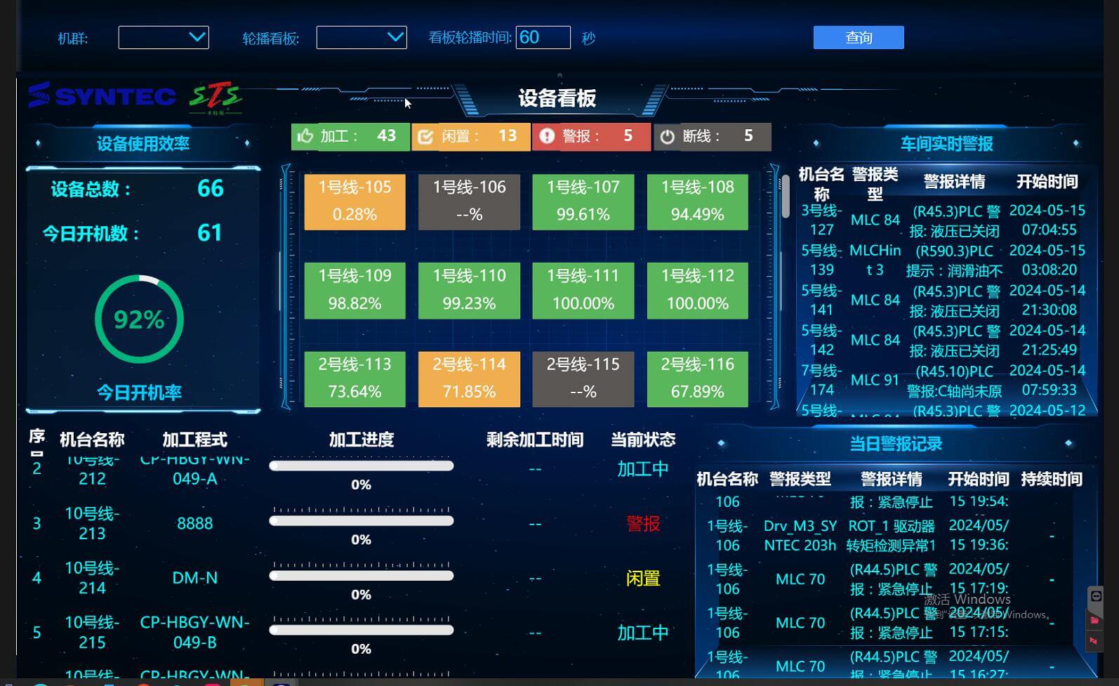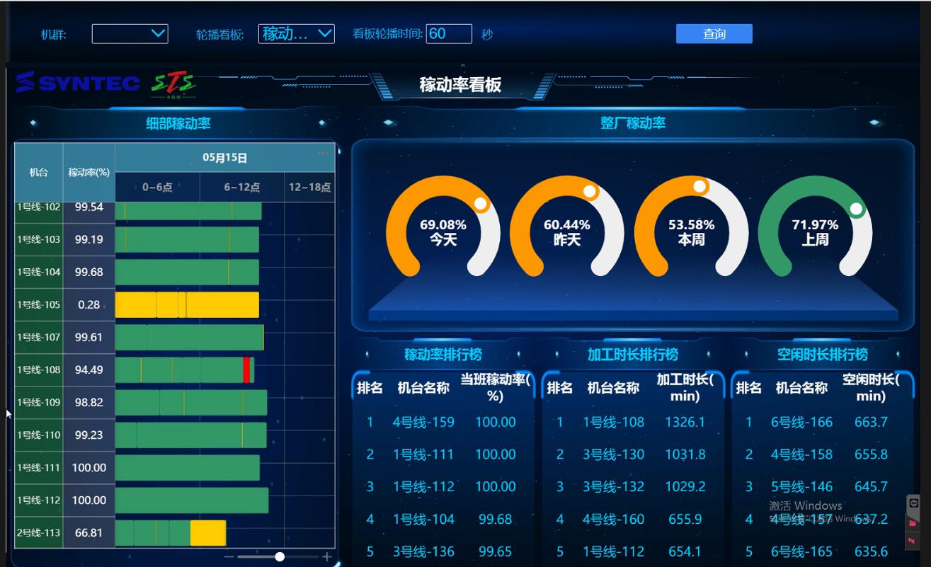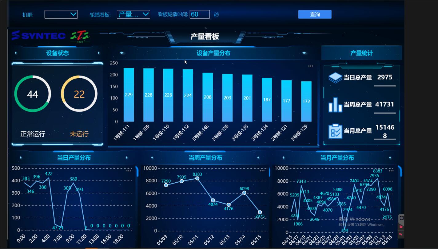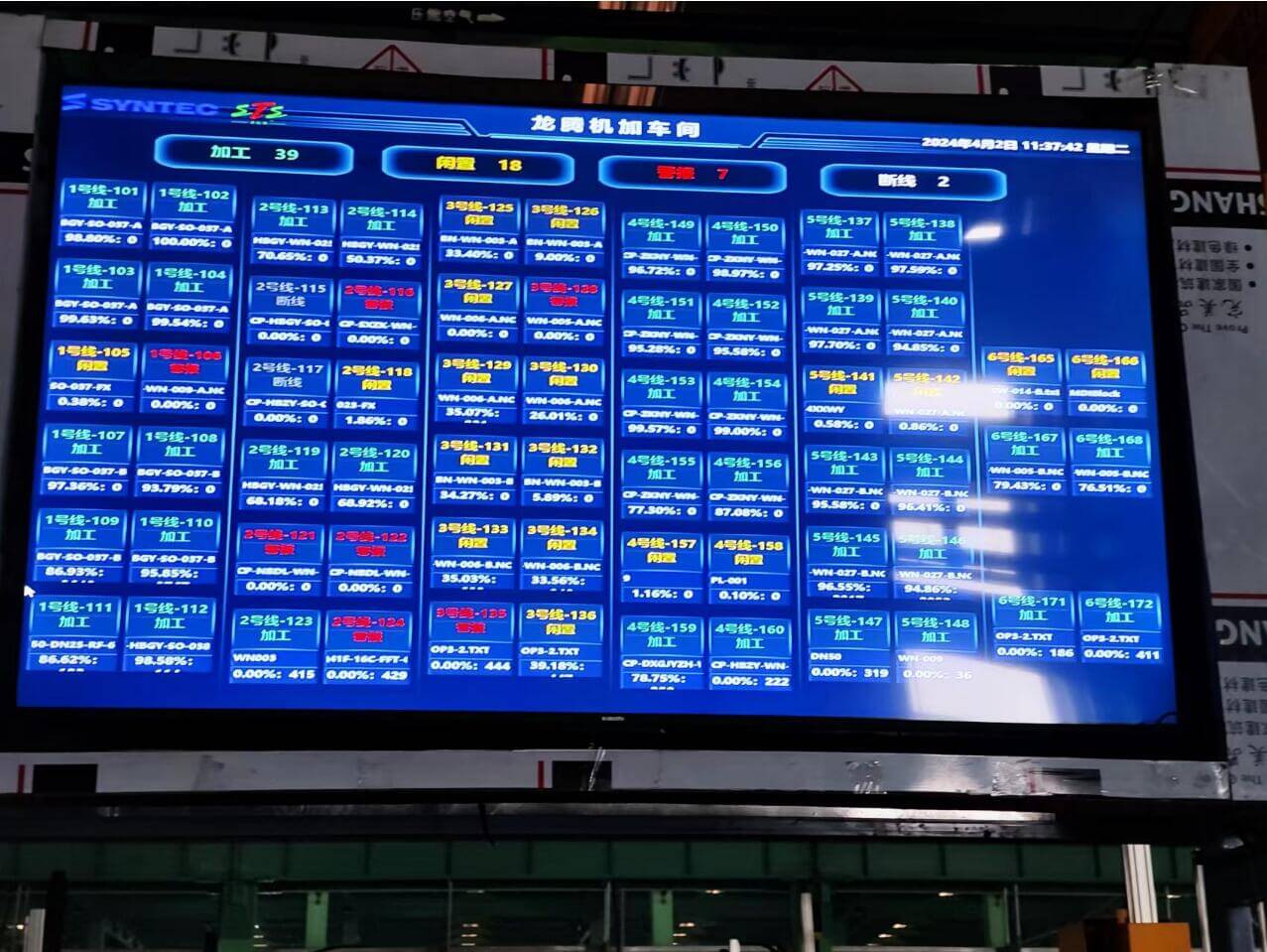 下面是设备看板,将设备参数实时传入到数据,然后在大屏上显示。需要在每台设备上安装巨灵鸟数据采集盒。
