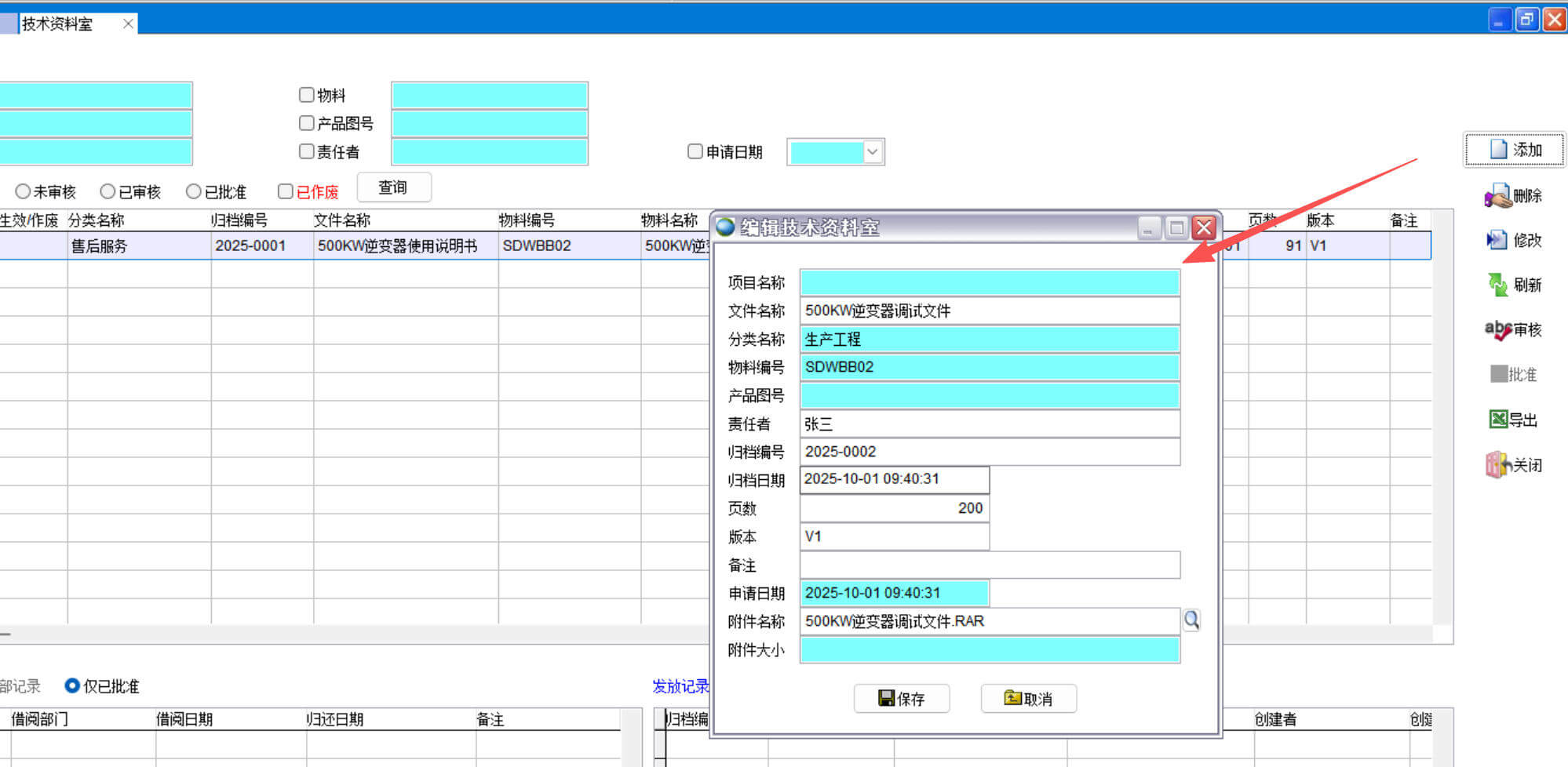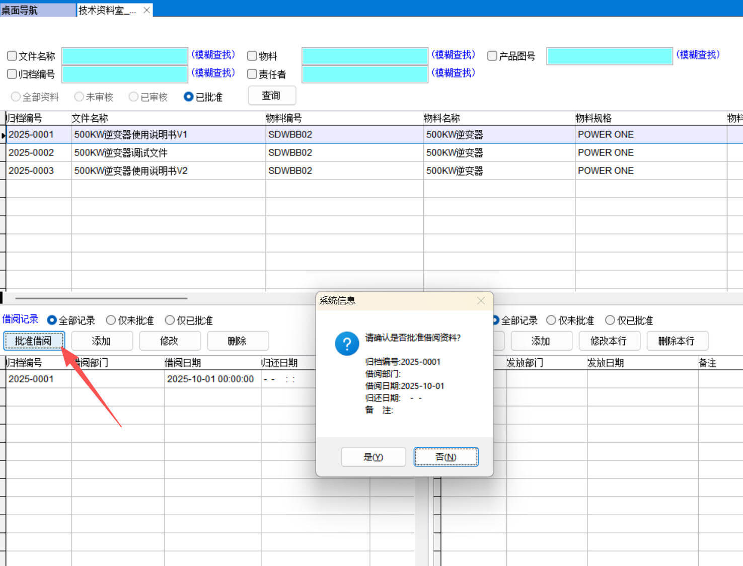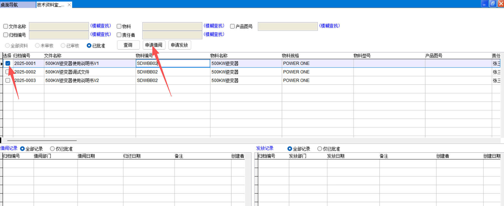 2、借阅发放管理-主菜单-技术-技术资料-技术资料室借阅发放管理
