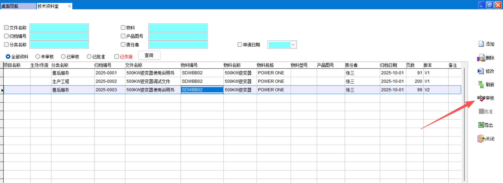 如果技术资料需要领导审批后才能存档生效的,可以增加审批工作流