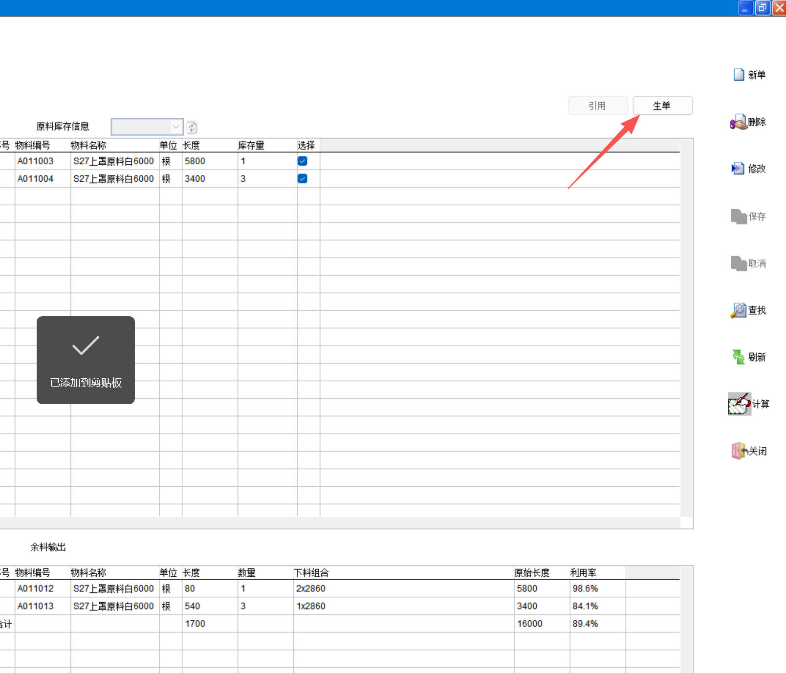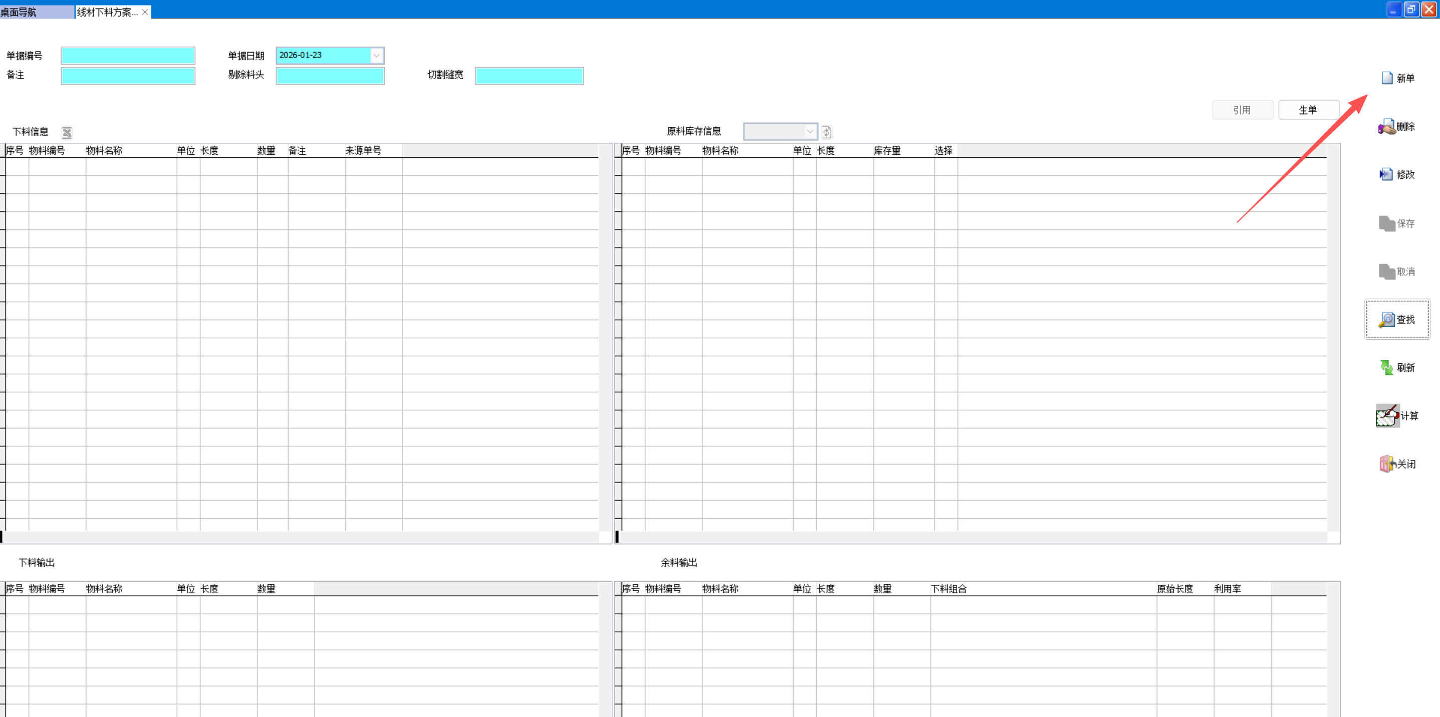 打开路径:【主菜单】-【制造】-【线材下料方案】