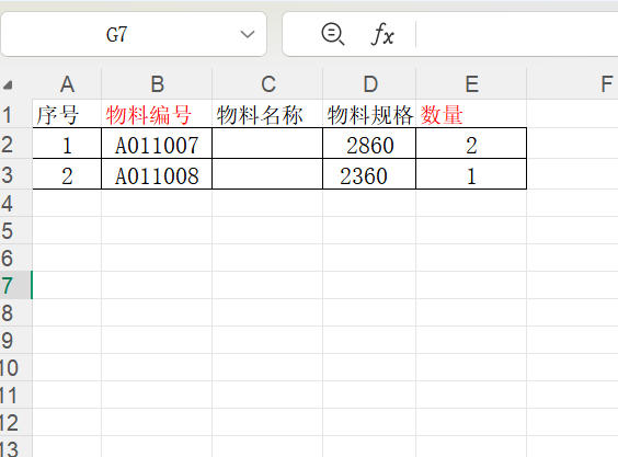 导入格式如下,物料编号必须是ERP中存在的