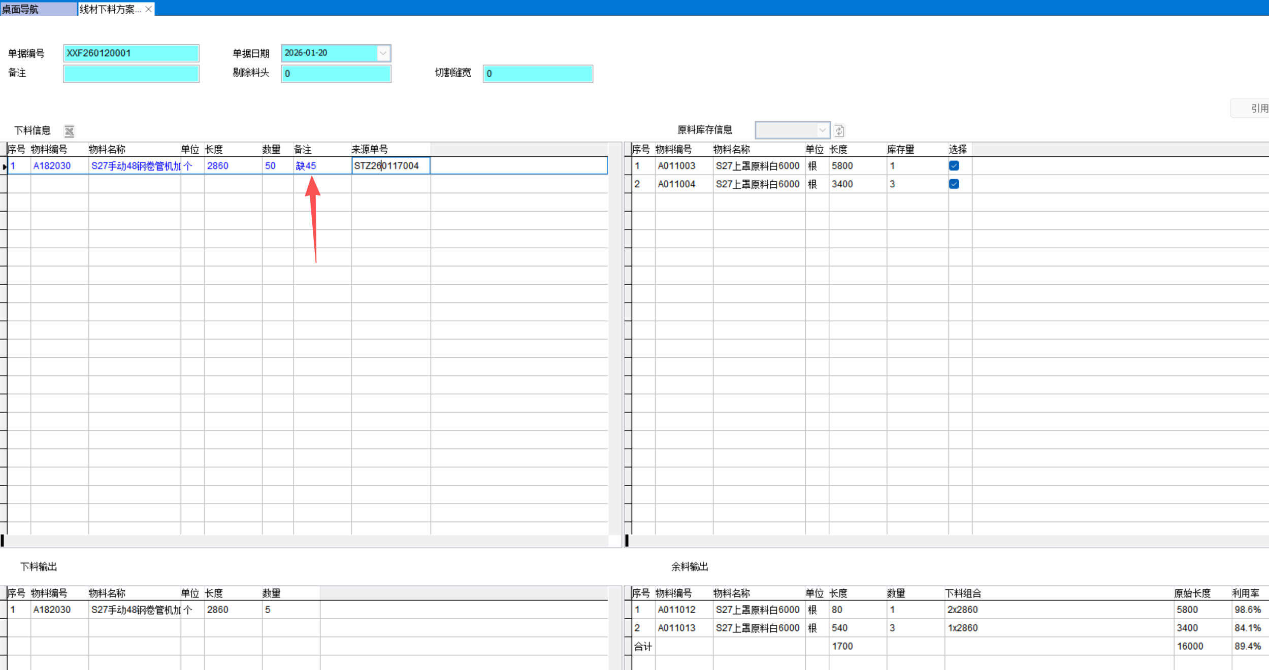 2、下料信息输入