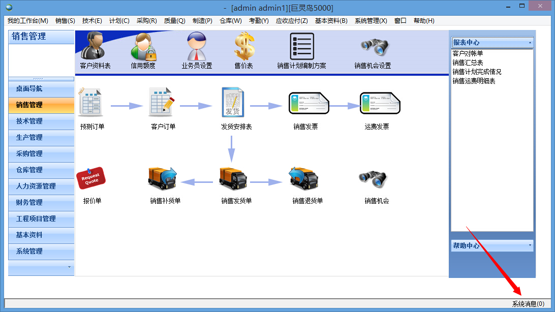 如果该请购单已完成编辑则点击发送,此时在李四的ERP中会弹出消息窗口