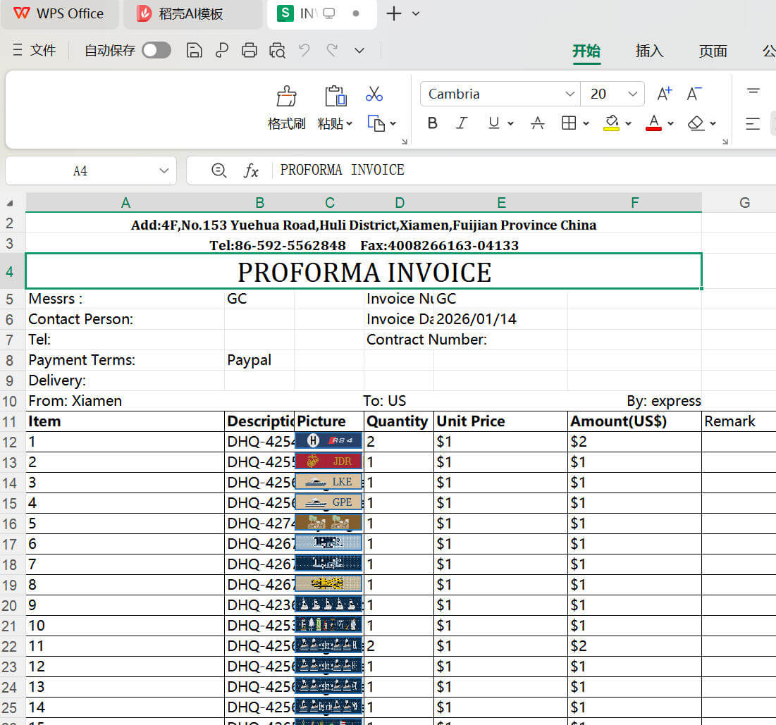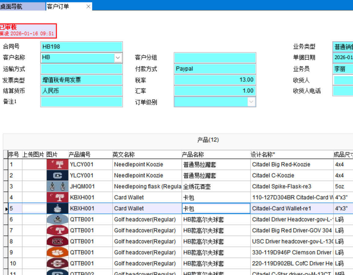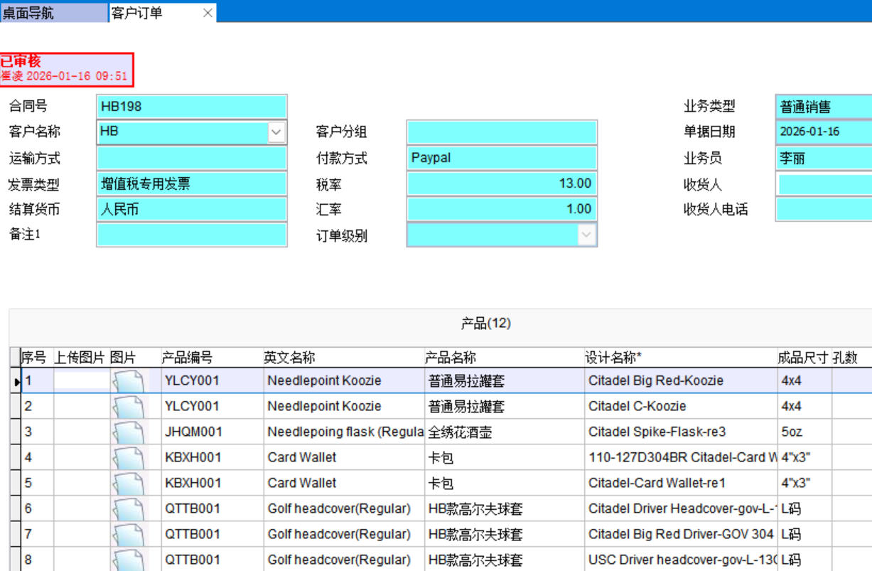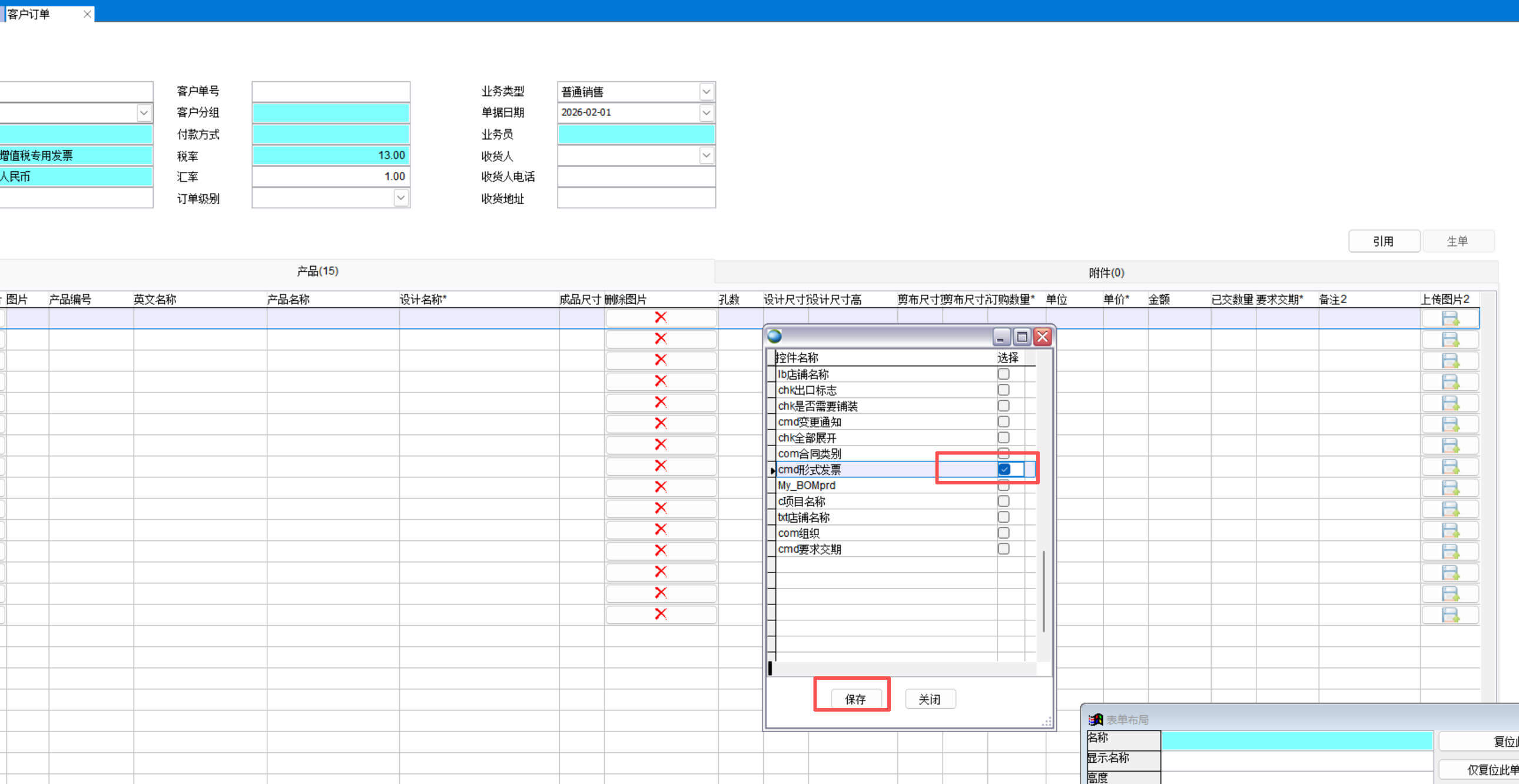 图片 图片功能默认是隐藏的,可以通过表体布局显示出来 图片是在物料编码表中上传,或在手机端的商品表中上传也可以,数据会同步到PC端 如果订单上的图片很多就会影响打开速度,可以设置只显示图片示意图 在配置文件中设置 设置后的效果 从客户订单上传图片 上面说的图片是在物料编码表中固定死的,但是如果用户每次订单的产品图片是变动的,也可以在客户订单中上传图片 多图片显示 如果一个产品都多个图片 形式发票 点击形式发票可以导出形式发票,适用于外贸企业 默认是没有形式发票按钮的,需要用表单布局显示出来 批量导入 客户订单可以批量导入 导入模板 收货人信息 收货人信息可以从客户订单手工输入,也可以在客户资料中提前维护进去 业务类型 客户订单有两种业务类型:普通销售、直运销售 直运销售就是购买其他公司的产品销售给客户,直运销售可以和直运采购业务结合使用,没有实物出入库。货物流向是直接从供应商到客户,财务结算通过销售发票、采购发票解决。详见直运业务 相关知识 项目名称