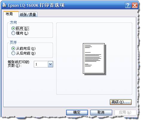 在打印的“打印首选项”中,单击“高级(V);”按钮,打开打印机的高级选项窗口: