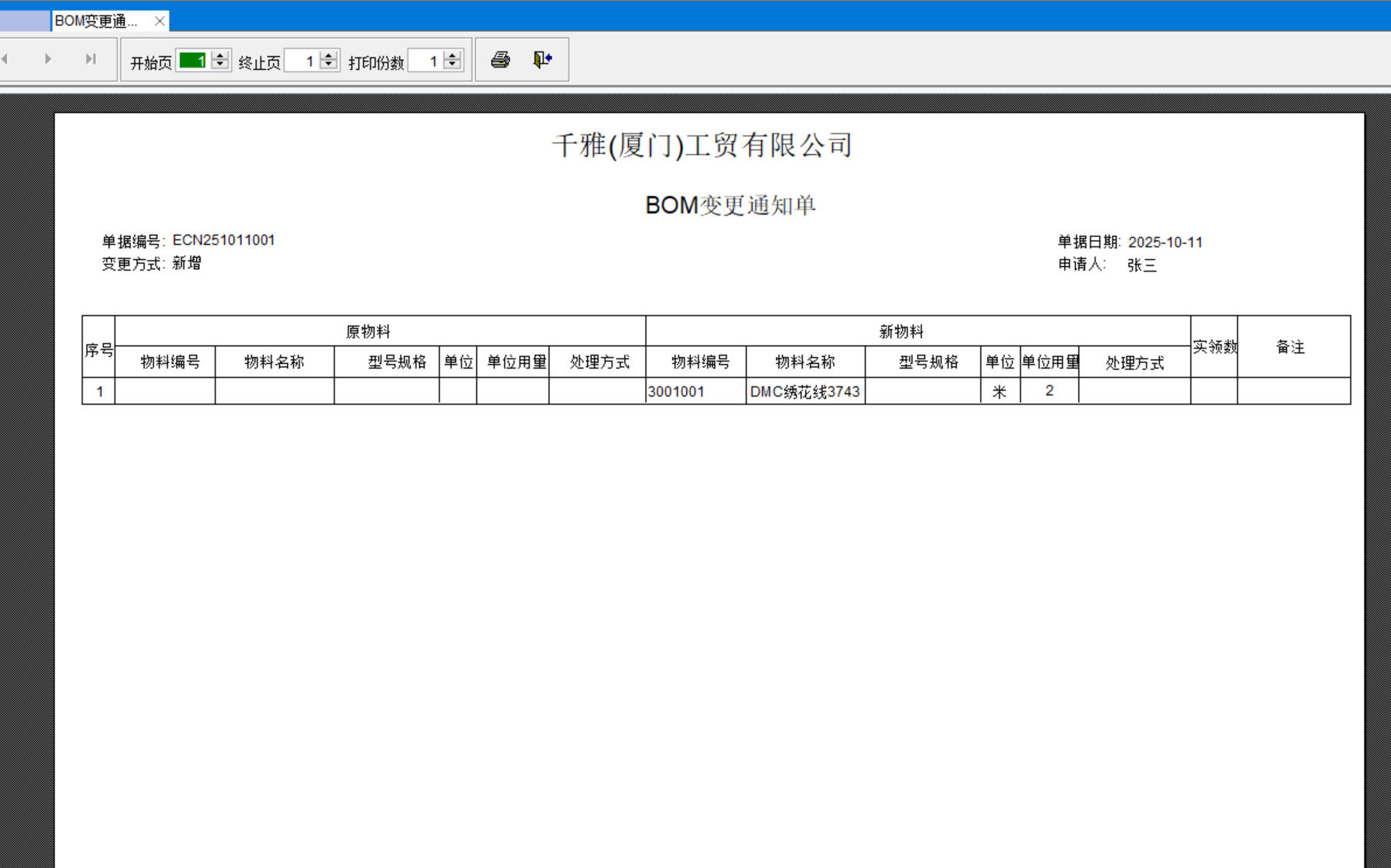 打开路径:【主菜单】->【技术】->【BOM】->【BOM变更通知单】